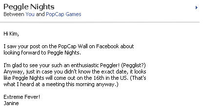 광님은 페이스북(Facebook)의 팝캡(Popcap) 페이지에 팬으로 등록되어 있습니다. (어차피 홍보 담당 분과 메일 주고 받는 사이니까) 별거 없지만, 그냥 빠심 팬심에서 이런 걸 적었죠.