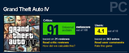 메타크리틱(metacritic)에서 볼 수 있는, 크리틱 평점 평균과 유저 평균 점수의 괴리.