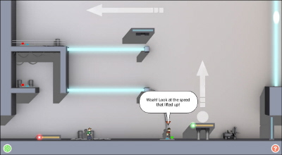 A D로 조종하고 >로 점프를 뛰거나, 화살표 좌우로 조종하고 Z로 점프를 뜁니다. 벽차고 점프도 되니, 첫 방에서 연습을 좀 해두시길. 두 캐릭터의 교대는 스페이스 바로 하고요. 목적은 둘 다 살리면서, 방을 빠져나가는 것.