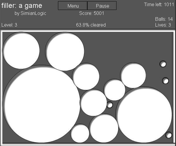 마우스를 클릭하면 공이 부풀어오르고, 클릭을 풀거나 주변의 벽 / 기존의 공과 닿아 더 이상 커질 수 없으면 공이 생성됩니다. 화면의 2/3를 채우면 스테이지 클리어. 단 공을 키우는 동안 튕겨다니는 공과 부딫히면 죽고, 한 스테이지에서 일정 이상 죽으면 게임오버. 속칭 '땅따먹기'의 변형이라 봐도 좋겠군요.