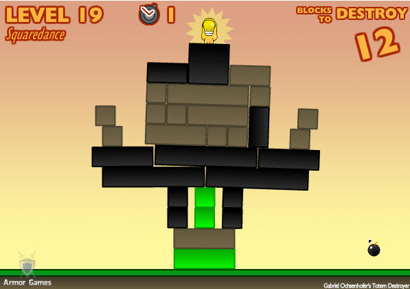 마우스로 블록을 클릭하면 없어지고, 중력과 물리 법칙에 의해 오브젝트들이 낙하와 흩어짐을 행합니다. 스테이지마다 지정된 블록 수를 없애면서, 맨 위의 토템이 땅에 떨어지지 않게 하면 클리어.