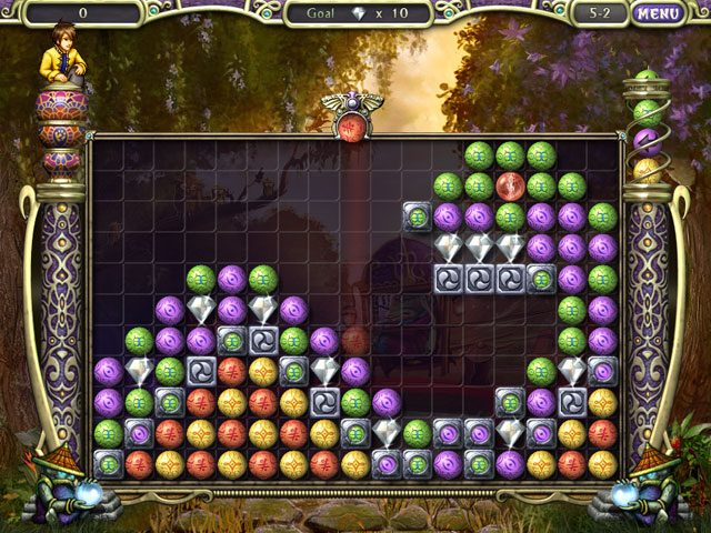 매치-3 게임이니까 3개 이상 맞추면 없어지는 거 아실테고요. 위에서 구슬을 떨어뜨리면 쌓이는데, 좌 - 우 화살표는 밀고 들어가며 모양을 바꾸고, 다이아몬드는 2번 떨어지거나 2층 이상에서 떨어지면 부서지며 사라집니다. 그 외 구슬들의 기능은 해보시면 아실테니 생략.