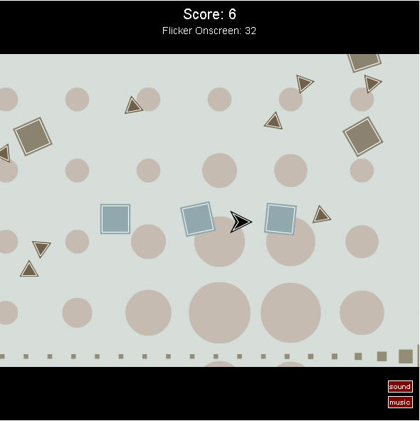WASD로 상하좌우 움직이고, 스페이스 바로 속도를 높입니다. 작은 삼각형은 피하고, 네모에 부딪혀 색깔 반전시키면 득점. 그게 게임의 전부입니다.