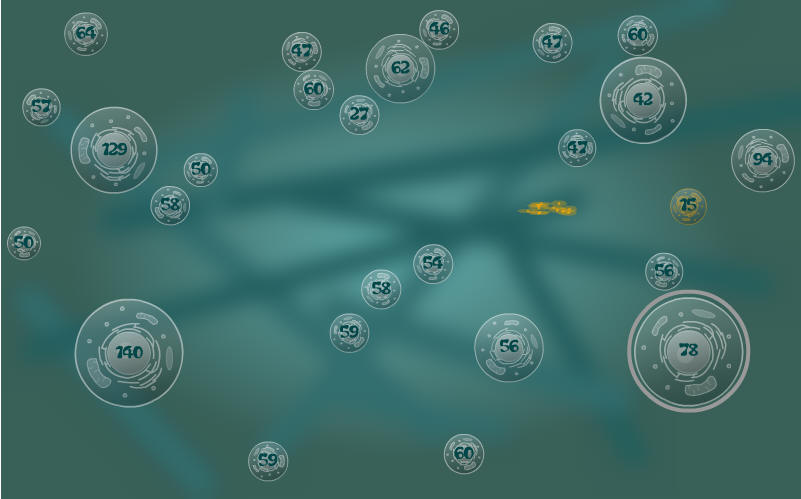 우선 '바이러스'로써 '감염'시키는 것이 목적인지라, 우주에서 행성끼리 펼치던 '과학'적인 모습 보다 좀 더 부정형적이고 익스페리멘탈합니다. [갈콘] 같은 전략 게임이긴 하지만, 딱딱 맞아 떨어지는 숫자 계산 위주라기 보다, 좀 더 불분명하고 허허로운 느낌을 준다는 거죠. 한 구역을 마우스로 드랙해 그 구역 안의 것들을 동시 지정하는 것도, 행성을 정확히 찍어 드랙하게 되어 있죠. 게다가 '세포'들이기 때문에 크기도 부정형이라 커질 수 있고, 심지어 바이러스들의 공격 / 입성을 받으면 위치가 움직이기까지 합니다. 바이러스들의 진격도 한 방향을 직선으로 가는게 아니라, 묘하게 헤매는 운동을 하고 말이죠.