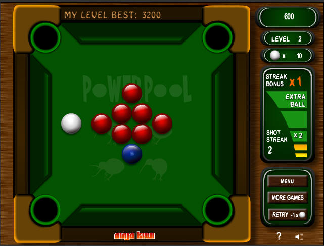 기본적으로는 당구입니다. 하얀 공 위에 마우스 커서를 갖다 대고, 드랙으로 땅기며 힘 조절해 놓으면 되죠. 하얀 공이 구멍에 들어가면 라이프가 깎이고, 빨간 공 등을 넣으면 점수 올라가며 체인 개념의 샷 스트릭(Shot Streak)이 올라갑니다. 못 넣거나 하얀 공이 빠지면 샷 스트릭이 깨지는데, 샷 스트릭을 쌓으면 점수의 배수가 올라가며 일정 횟수에 추가 공(Extra Ball)이 주어지니 어지간하면 이으며 가는 것이 좋습니다. 한 샷에 여러 공을 넣으면, 그건 그것대로 추가 점수가 주어지고요.