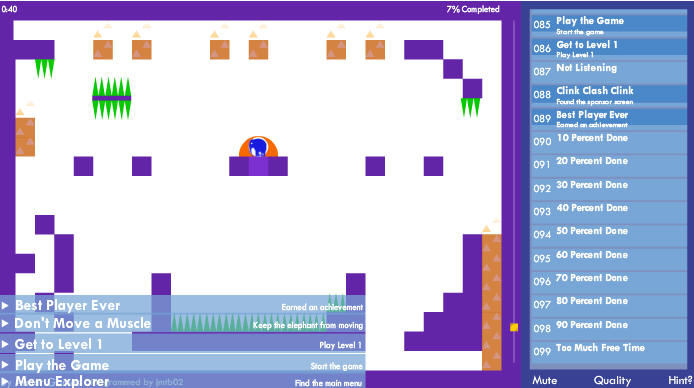 ... 이게 뭔 소린지 궁금하실텐데... 그냥 해보시길. 메타게임(metagame)으로 소개되었지만, 이것은 말장난이거나 / 실험이거나 / 잔재미를 줄지도 모릅니다. 참고로 일반적인 도전 과제는 쉽지만, 100%를 따려면 힌트를 보지 않고는 힘들 것입니다. (아니 불가능합니다.)