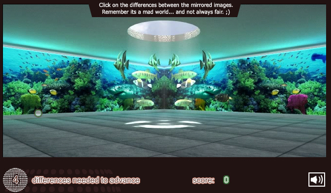 웹에서 플래시로 돌아가는 다른 그림 찾기 게임은 꽤 많은데요. 이 게임 [매드 월드(Mad World)]의 특성이라면, 같은 그림 2개를 늘어놓은 것이 아니라 / 중앙을 기준으로 양쪽을 반전시켜 놓았다라는 부분이겠습니다. 별거 아닌 변화인 것 같지만 꽤 효과적인듯 싶고요. 기본적인 그래픽도 좋은데다가, 스테이지 클리어때 등장하는 효과가 굉장한 수준이기도 하지요. 퍼즐의 난이도 또한 여타 게임들보다는 좀 낮은 편이고, 전체 길이도 짧아 엔딩을 보는데 그리 큰 부담은 없고.