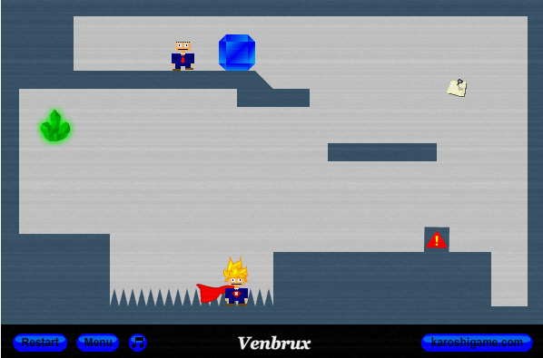 카로시야 언제나 카로시지만, 각 편마다 약간씩 다른 특성을 갖고 있었는데요. 이번 편에서는 죽지 않는 슈퍼 카로시가 등장합니다. 단 혼자 죽음을 찾아가는게 아니라 괜히 돌아다니는 동료(?)들을 죽인 후, 크립토나이트(...)를 먹어 슈퍼 모드 해제후 자신도 죽어야 한다는 부분에서 [레밍스(Lemmings)]가 살짝 생각나기도 하는데요. 초현실적이고 괴상하게 설치해놓은 퍼즐도 여전합니다.