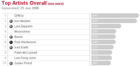 Pig-Min의 운영자인 광님은, Last.fm 계정을 갖고 있는데요. 처음 만들었을 때는 쓰지 않다가 한참 나중에 재미를 붙였기 때문에, 옛날에 들었던 음악은 DB에 기록되지 않은 경우도 많긴 합니다.