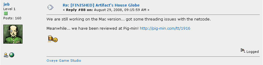 공식 홈페이지에 리뷰들을 링크거는 아카이브를 만드는 일은 종종 있는데, 이렇게 포럼의 쓰레드에서 자랑하는 일은 거의 없지 않았나 싶네요. (게다가 영어도 아닌데.) 뭐 물론, 그냥 자그마한 프리웨어 프로젝트다보니 리뷰 등이 걸릴 일이 거의 없어서, 그나마 하나 뜬거 자랑하는 건지도 모르겠지만...