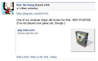 예전 [하비스트(Harvest)] 리뷰하던 시절 이 분 젠스 베르겐스텐(Jens Bergensten)씨 인터뷰도 딴 적이 있는데, 보시면 아시겠지만 이 분 한국의 [스타크래프트(Starcraft)] 리그도 찾아보고 할 정도로 나름대로 한국에 대한 항가항가 내지 환상이 있는 분입니다. 그래서인지 Pig-Min 같은 작고 여린 곳에서 자신들이 알아볼 수 없는 언어로 ritgun님이 리뷰한 내용을.