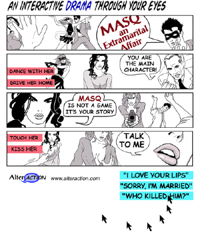 [마스끄]는 플레이어로 하여금 '구체적이고/성적인(concrete/physical)' 단어를 사용하게 해줄 뿐 아니라, 잘 만들어진 캐릭터들과 개인적인 인간관계를 할 수 있게 해주고, 그들의 감정에 영향을 미치면서, 이 캐릭터들을 살필 수 있게 해줍니다. 선형적(Linear)인 문학에서는 불가능한 일들이죠.